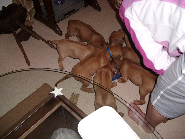 Die Ersten die schauen durften mit 3 Wochen Thomas und Tabitha die Akira sehr gut kennt , aber auch nur von draußen.